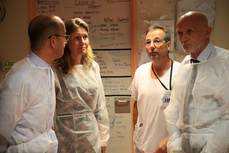 Yaël Braun Pivet et Stéphane Mazars avec le mayeuticien Olivier Moreau